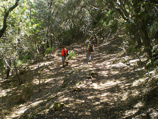 El territori és empinat i abunden les carritxeres. En patim les conseqüències a les cames. Els dos anam amb calçons curts.