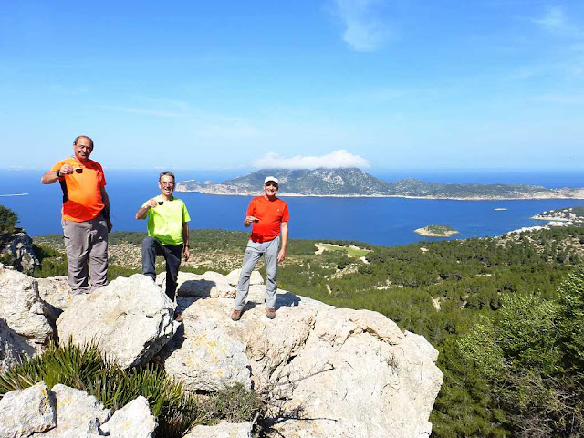 Curiosament, el cim de sa Dragonera cada cop te més boira. És un fenomen molt curiós. També ens trobam amb els primers excursionistes estrangers i, mentre guaitam des del cim, en veiem uns quants més que davallen pel pas Vermell.