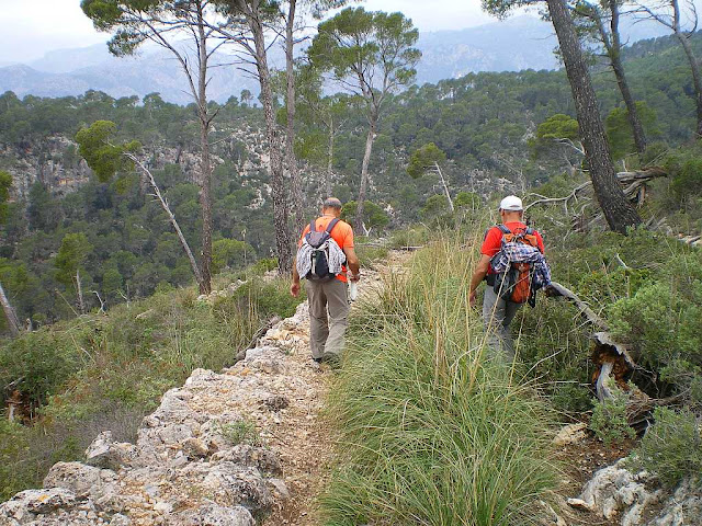 La caminada és prou agradable i no hem de fer més que seguir el camí de carro, que ara ens mena, davallant, a fer llargues corbes per anar superant els desnivell mantenint una pendent raonable.