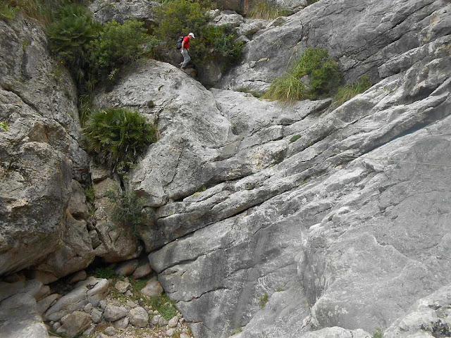 Bots de roca en roca, passes irregulars però sense gaire desnivell. També ens trobam amb els primers exemplars florits de la didalera.