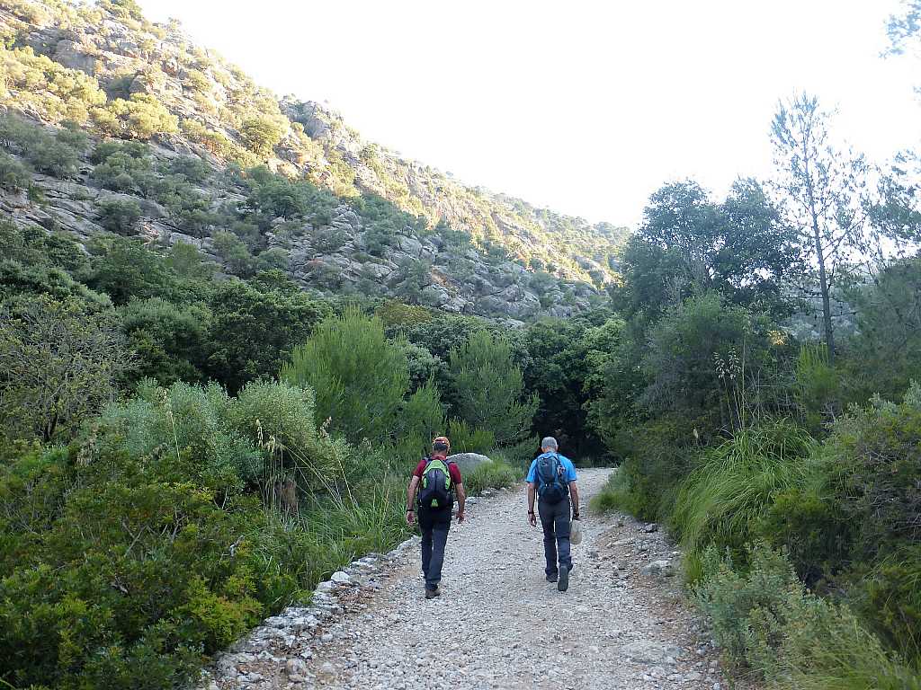 No ens queda més que anar cap a Valldemossa, pel mateix camí que hem pujat de bon matí. Ara no en trobam d’altres caminadors. Fa massa calor. Així mateix la caminada resulta prou entretinguda i relaxant, a pesar del cansament que duim els tres.